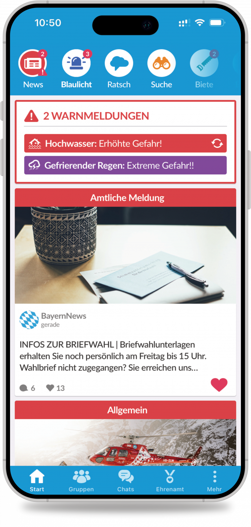 Mit dem BayernFunk erhältst du lokale Neuigkeiten zu Vereinen, Ehrenämtern, Veranstaltungen, Bildung, Kultur, Religion und Gesundheit, direkt auf dein Smartphone. Darüber hinaus empfängst du aktuelle Nachrichten aus dem Rathaus sowie von Blaulichtinstitutionen aus deiner Region. Es fördert das Miteinander und stärkt die Gemeinschaft vor Ort.
